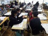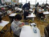 4年生は、図工の時間に初めての彫刻刀を使いました。