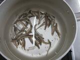 米をとぎ、30分程度吸水させました。また、煮干しを使って、だしも取りました。