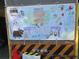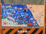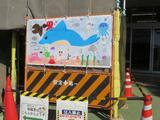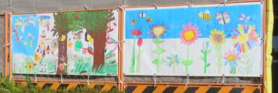 外壁工事の業者さんのお計らいで、工事現場の安全防御柵に子供たちの手描きのシートが追加されました。