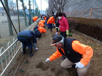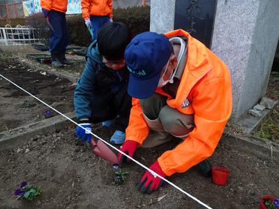 12月21日(日) 校舎南側の花壇の花の植え替え作業を行いました。
