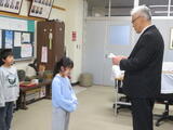 そろばんボランティアの先生にしっかりとお礼ができる3年生。