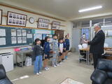 防刃衣や警棒、手錠、盾などを触らせていただきました。「防刃衣は重いな。」など、子どもたちは関心を高めていました。