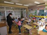 下校の際は、翌日に誕生日を迎える担任と、生まれてくる赤ちゃんに対して、「ハッピーバースデイ」を合唱しました。その後、校門まで担任が見送り、1年生は下校しました。