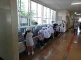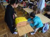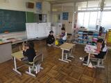今週から6年生は、1年生の朝の準備の手伝いをしています。
