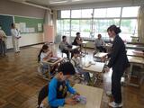 優しい声かけで、1年生に寄り添いながら活動しています。