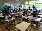 毎週水曜日は外国語活動の授業が始まります。国の名前を英語で言ったり、いろいろな国のあいさつを知ったりしました。ALTの先生の発音をよく聞いて練習しました。